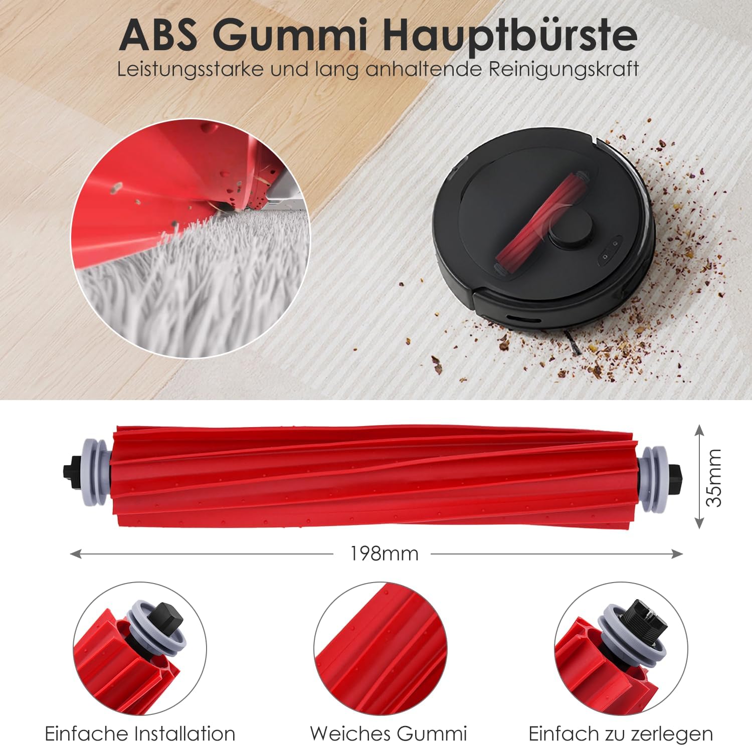 • [Die abnehmbare ABS-Gummi-Hauptbürste] kann so eingestellt werden, dass sie sich dreht und den Staub in den Staubsaugerbeutel fegt - mit starker und lang anhaltender Reinigungskraft. Die Seitenbürsten reichen tief in die Ecken und Kanten, um noch mehr