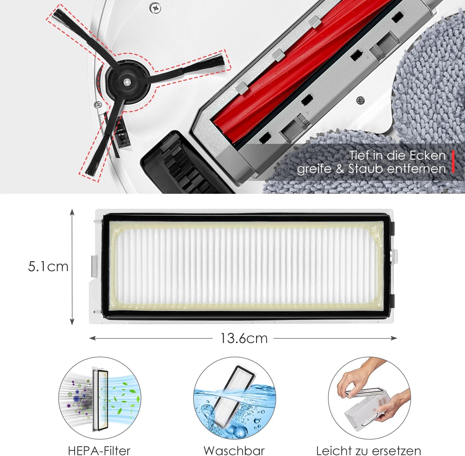 • [Mopptuch und Filter] Das Mikrofasermopptuch ist saugfähig und leicht anzubringen und entfernt mühelos alle Arten von Flecken, Fussabdrücken und Staub. Der Filter besteht aus ABA-Material, das Staub, Tierhaare und winzige Partikel effektiv filtern