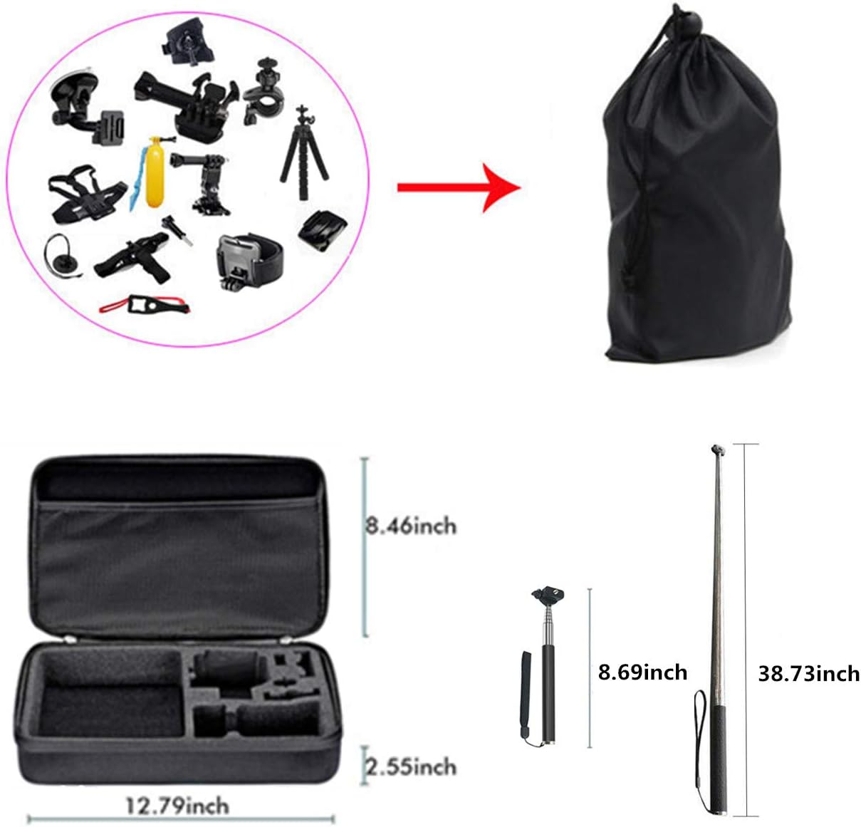 - 【Alles in einem Set】Das Action Kamera Zubehör-Kit umfasst Handschlaufe, Saugnapfhalterung für das Auto, Brusthalterung,Kopfschlaufe, Stativ, Selfie und schwimmenden Griff usw. Anti-Beschlag Einlagen, Aufbewahrungstasche der ideale Begleiter für