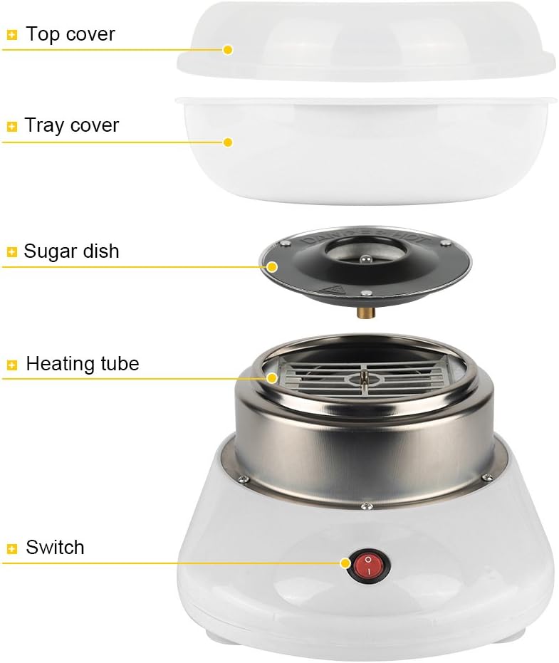 - đŹâ Leicht zu reinigen: Die Zuckerwatte-Maschine hat eine grosse auslaufsfreie Abdeckplatte, die wĂ€hrend des Produktionsprozesses nicht leicht bespritzt wird. Nach Gebrauch mit heissem Wasser reinigen und nicht daran kleben. Nach der Herstellung