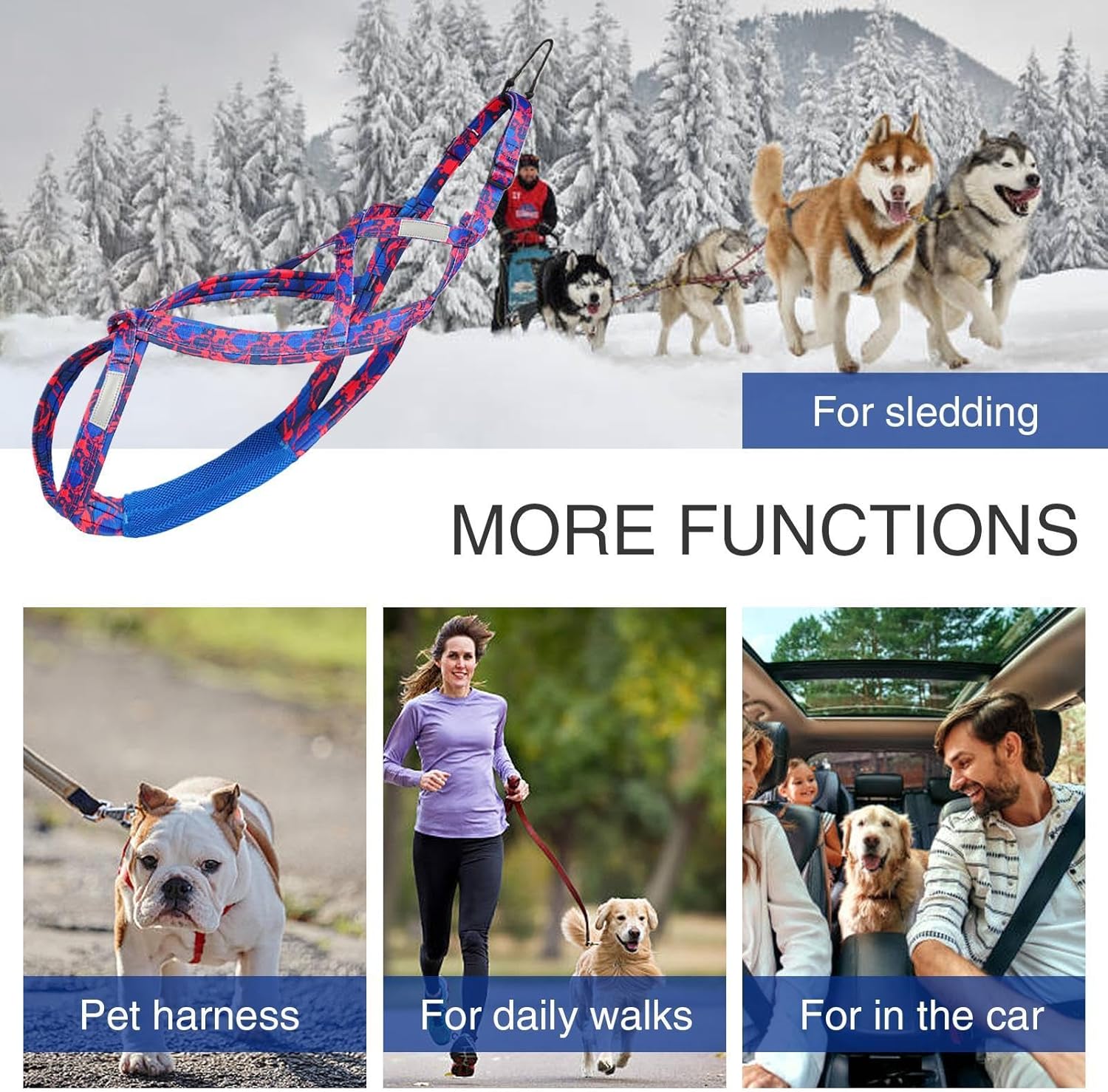 - 【Weit verbreitet】 Dieses Hundegeschirr zum Ziehen ist nicht nur zum Rodeln, es ist ein weit verbreitetes und vielseitiges Haustierzubehör, das auch für Spaziergänge und Autofahrten verwendet werden kann. Entworfen für volle Kontrolle und erhöhte