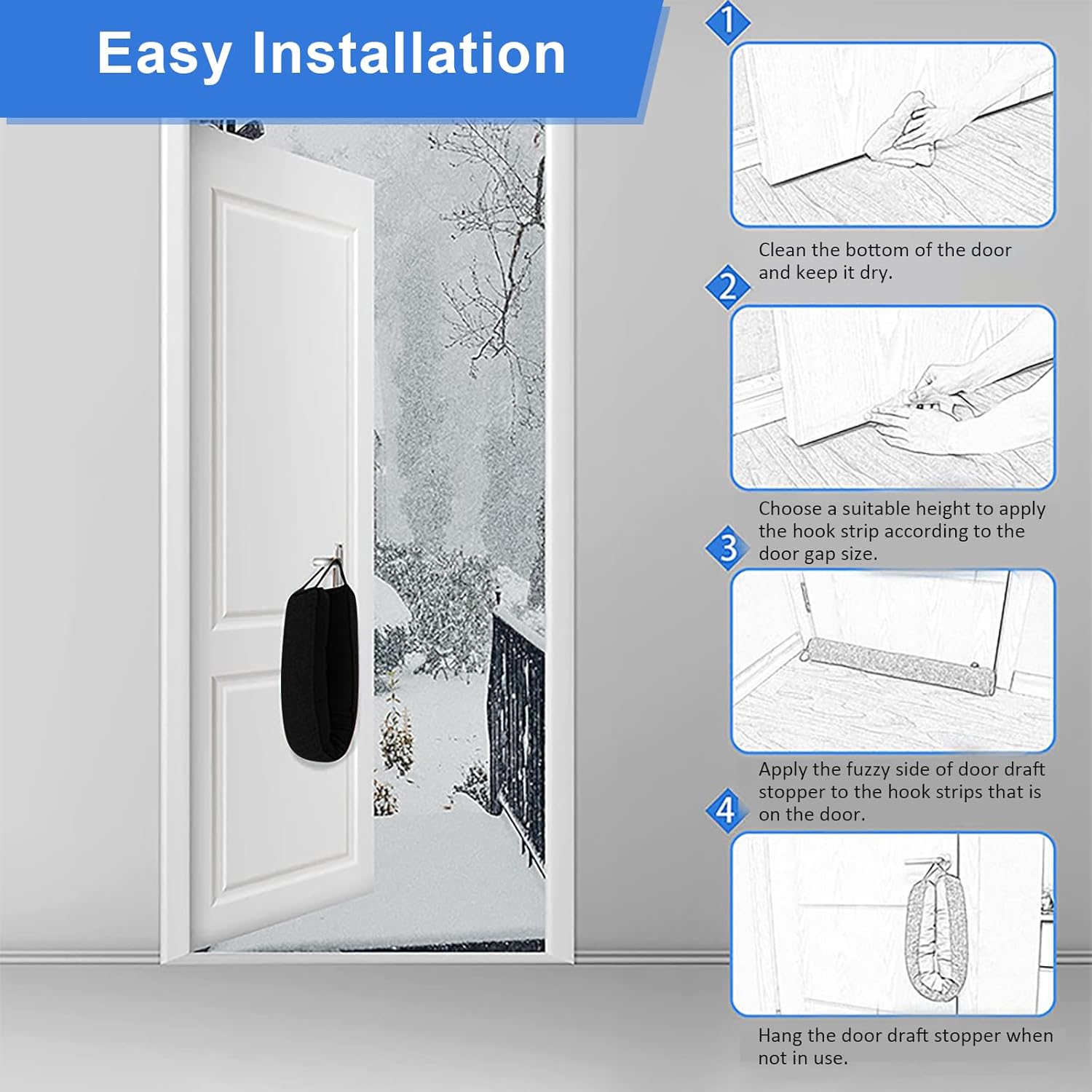 - 【Einfache Installation】Zugluftstopper für Türen ist einfach zu installieren und zu entfernen. Kein Werkzeug nötig. Einfach die mitgelieferte Klettband am Türboden befestigen und Türdichtung aufkleben. Es hat eine dauerhafte gestrickte