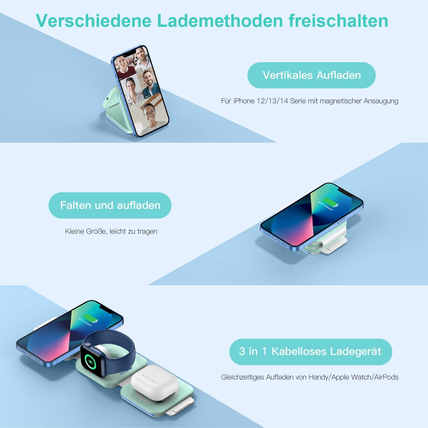 ZUMSEY 3 in 1 Faltbar Kabelloses Ladegerät, Magnetische Ladestation Kompatibel mit iPhone 15 14 13 1