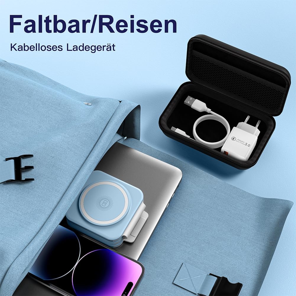 - 【Kabelloses Ladegerät für mehrere Geräte】Magnetische kabellose Ladestation für Telefone unterstützt das kabellose Aufladen der iPhone 15/14/13/12-Serie. Auch kompatibel mit Apple Watch 9/Ultra 2/8/7/6/SE/5/4, AirPods 2/3/Pro. Und die kabellose