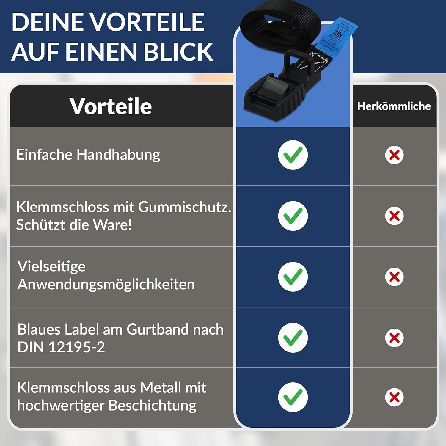- ✅ VORTEILSPACK: Klemmschlosszurrgurte in verschiedenen Sets und verschiedenen Längen !