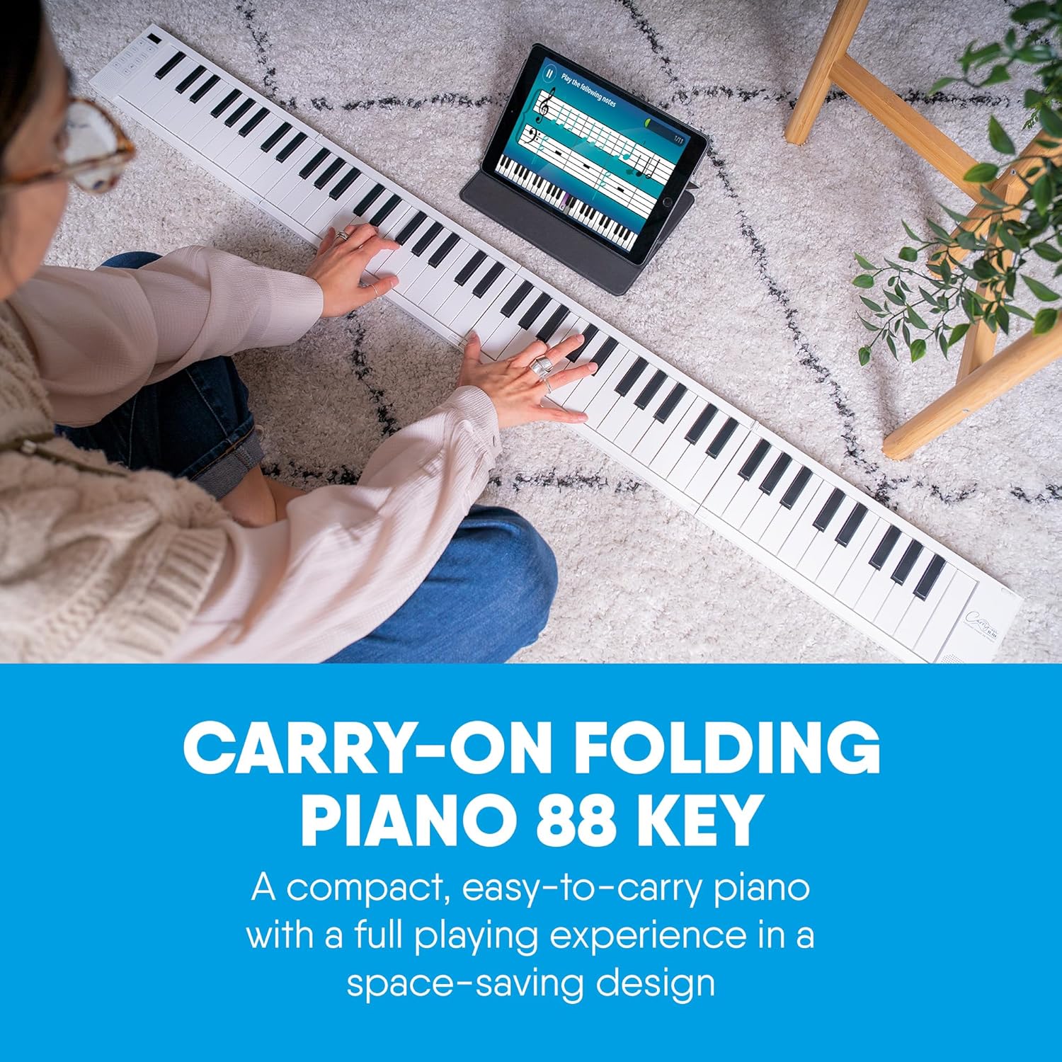 - LEICHTE UND KOMPAKTE, TRAGBARE KLAVIERTASTATUR mit 88 Tasten in voller Länge, das sich für optimierte Benutzerfreundlichkeit und Funktionalität auf 33 cm zusammenklappen lässt und nur 1,6 kg wiegt.