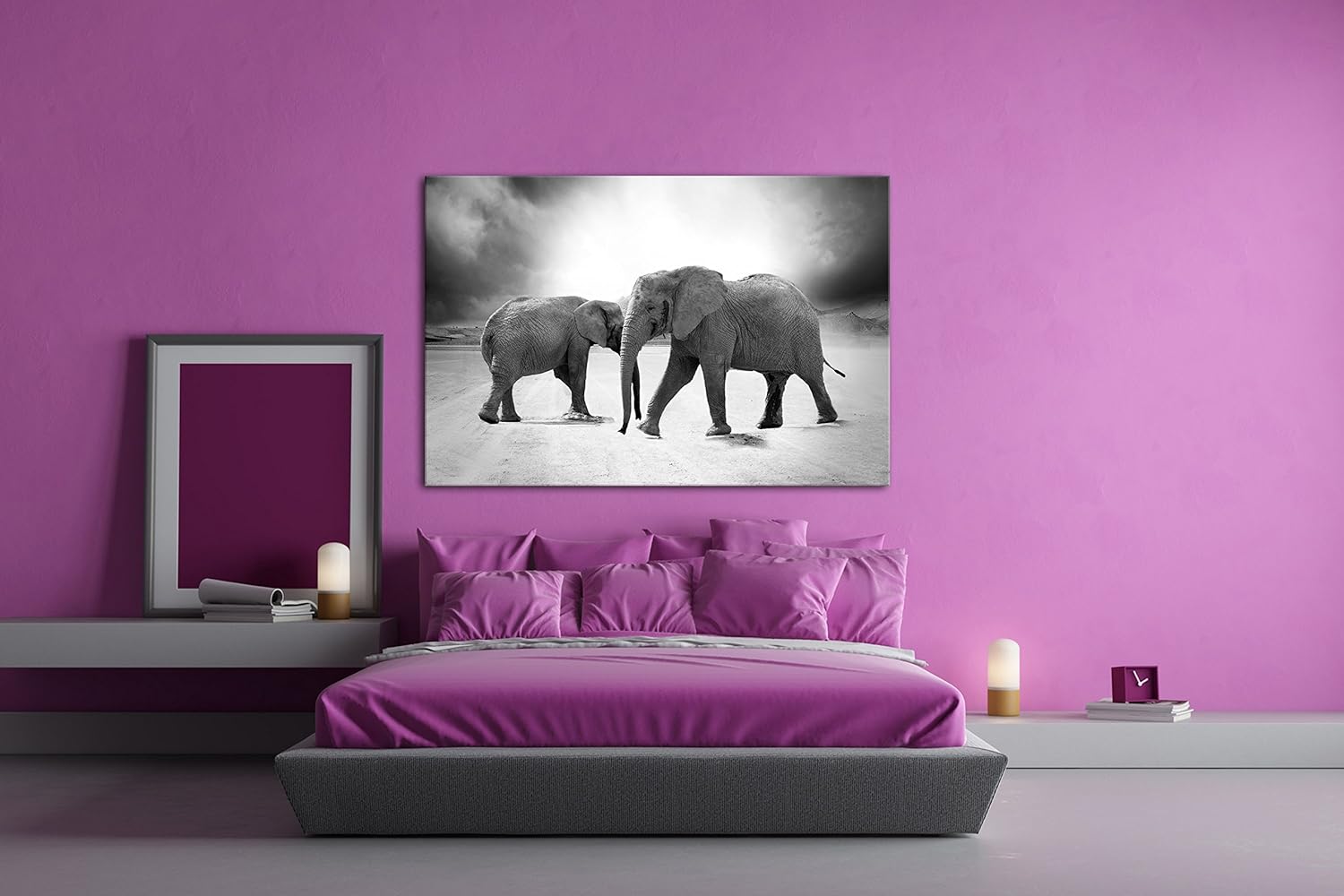 Zwei grosse Elefanten in der Wüste Format: 80x60 als Leinwandbild, Motiv fertig gerahmt auf Echtholz