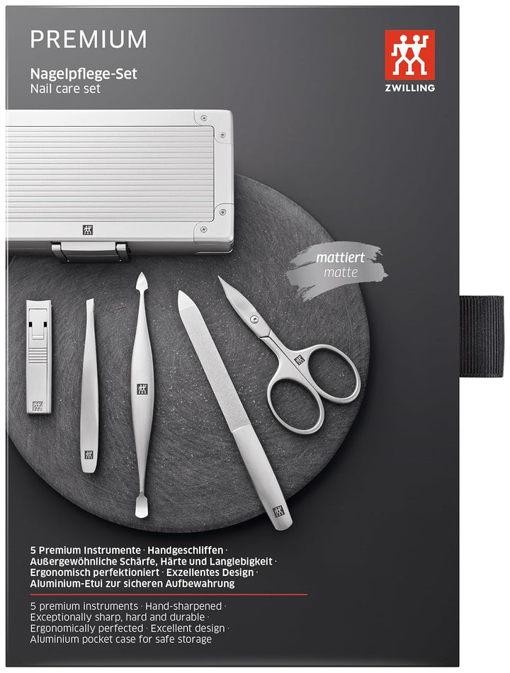 - Lieferumfang: Bestehend aus 2-in-1 Kombi-Nagelschere, TWIN S Nagelknipser, 130mm Saphir-Nagelfeile, 2-in-1 Maniküre-Instrument und einer schrägen Pinzette