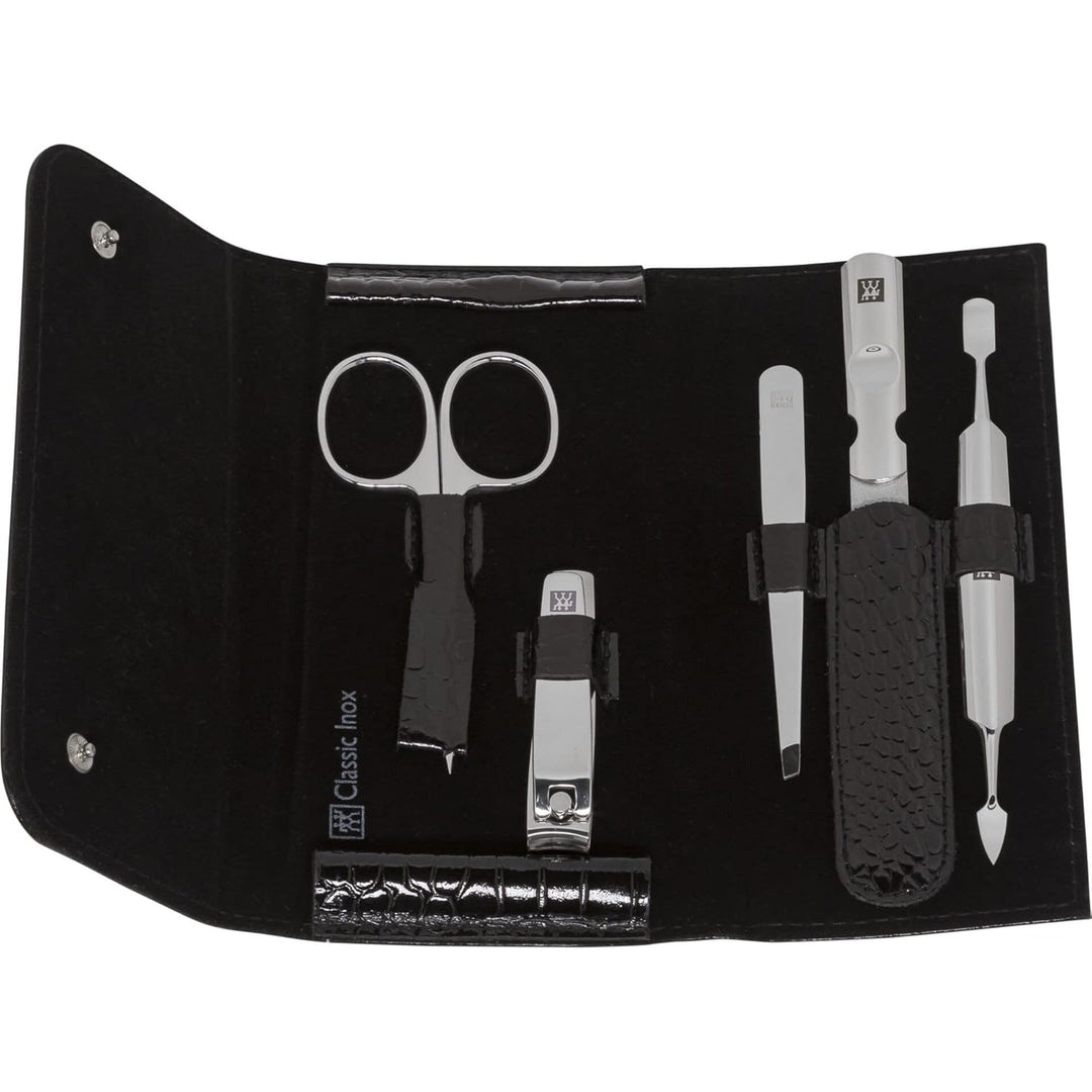 ZWILLING Maniküre Set Pediküre Kit, Nagelpflege Komplettset, Rindleder, Kroko Edition, 5-teilig, Sch