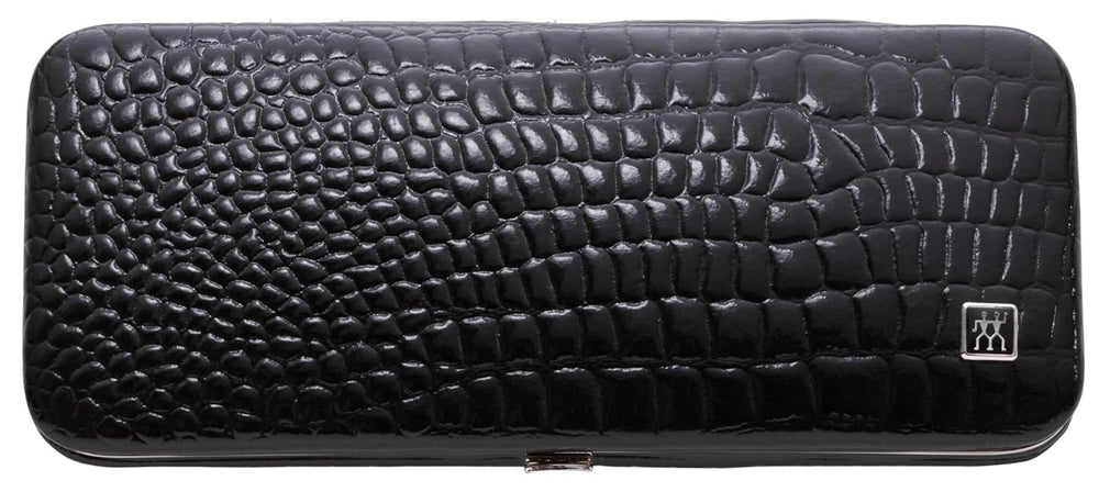 - Material & Design: Schwarzes Rindleder-Etui mit Metallrahmen in Kroko-Optik und innenseitigem Samtbezug; Eine ergonomische Form der Instrumente; Optimaler Begleiter für unterwegs oder auf Reisen