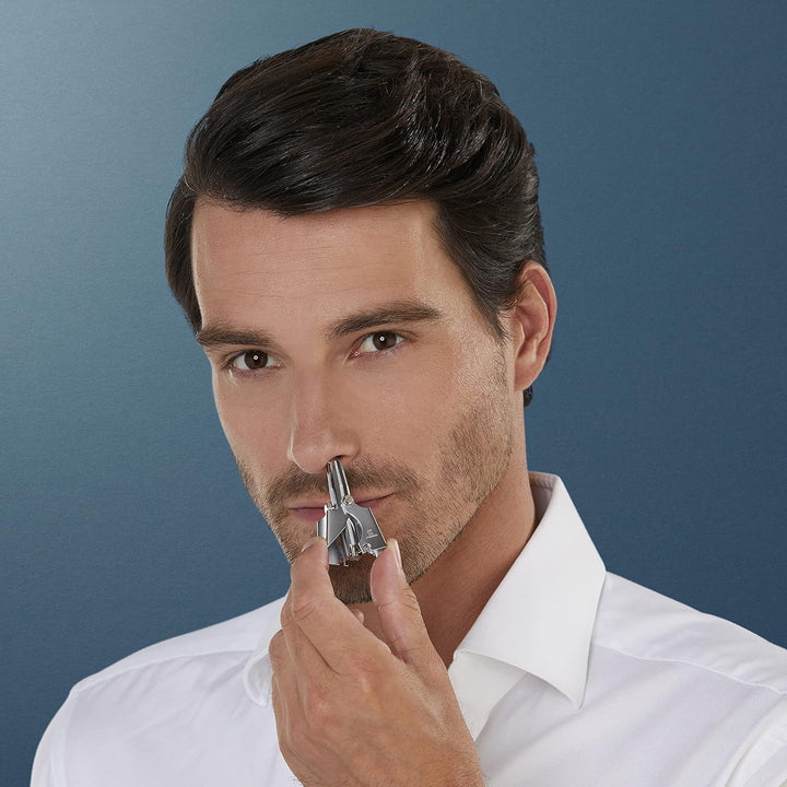 - Führen Sie den Trimmer vorsichtig in Nasen- und Ohrlöcher ein und halten Sie ihn dort in Bewegung