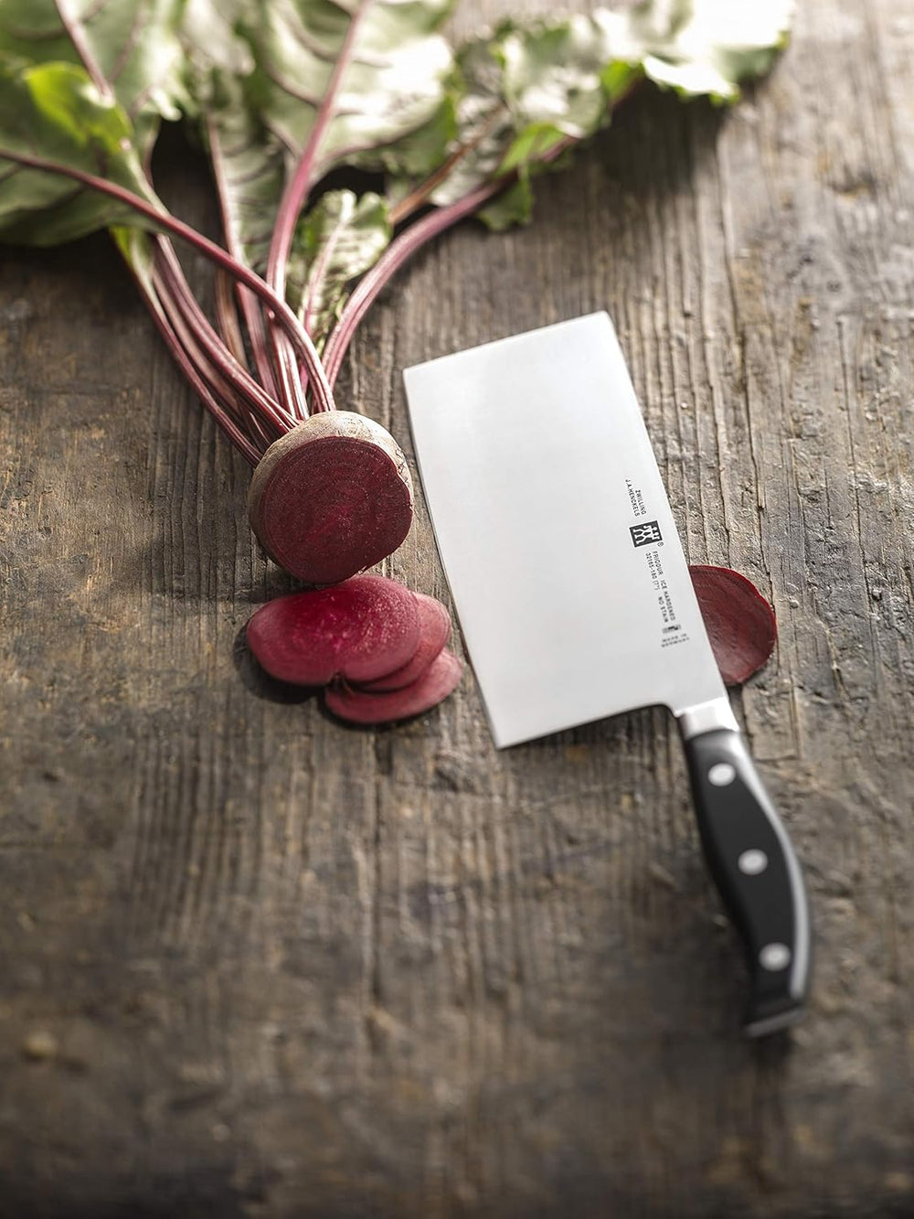- Lieferumfang: 1 x ZWILLING Pro Hackmesser, Klingenlänge: 16 cm, Gewicht: 0,47 kg, LxBxH: 30 x 1,90 x 9 cm, Material: Rostfreier Spezialstahl, Kunststoff-Griff, Farbe: Schwarz, 1002838
