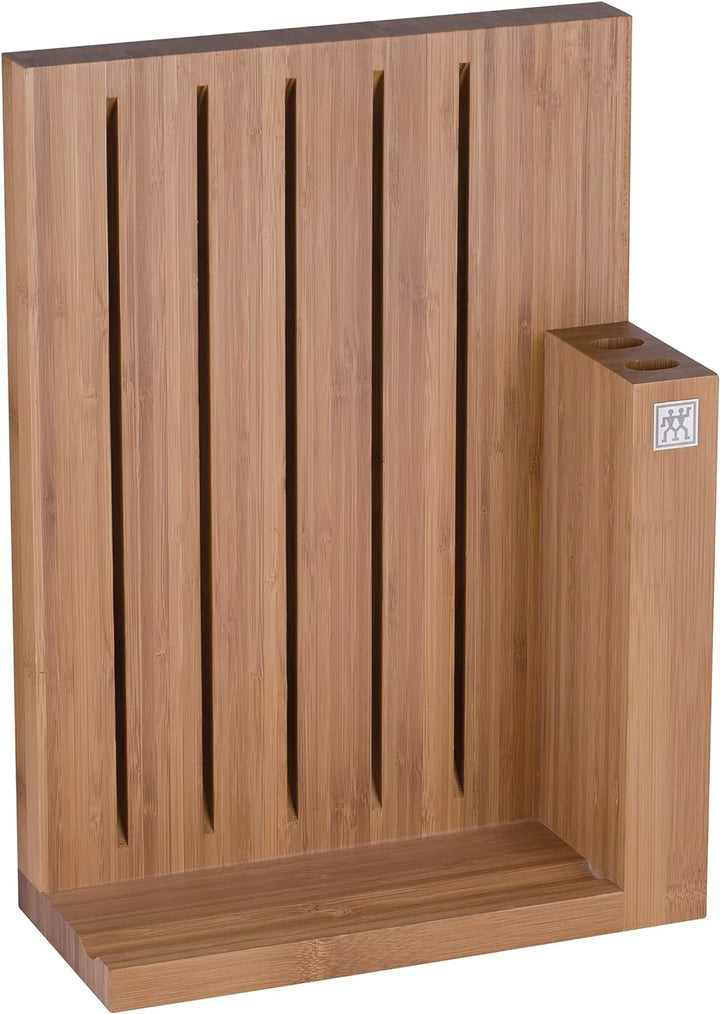 - Lieferumfang: 1 x ZWILLING Pro Messerblock, 6-tlg., 1 Spick- und Garniermesser (10 cm), 1 Universalmesser (13 cm), 1 Fleischmesser (16 cm), 1 Kochmesser (20 cm), 1 Brotmesser (20 cm), 1 Block, Bambus/Sonderschmelze, Farbe: Schwarz, 1002881