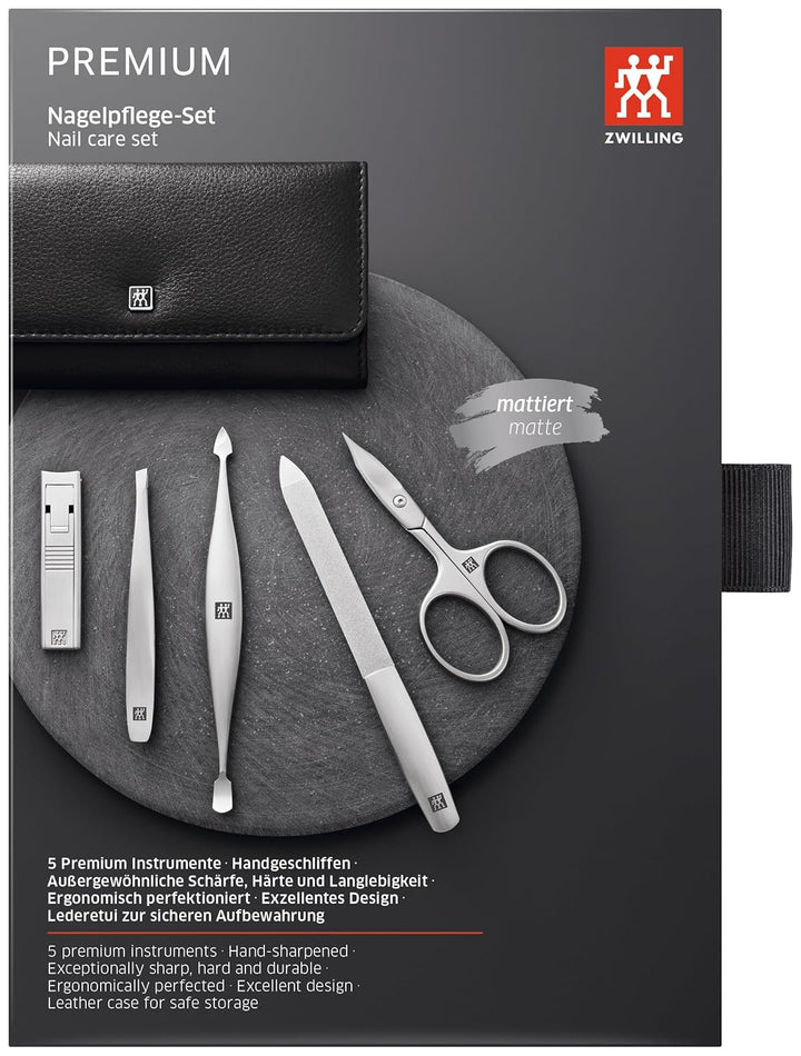 - Lieferumfang: Bestehend aus 2-in-1 Kombi-Nagelschere, TWIN S Nagelknipser, Saphir-Nagelfeile, 2-in-1 Maniküre-Instrument und einer schrägen Pinzette
