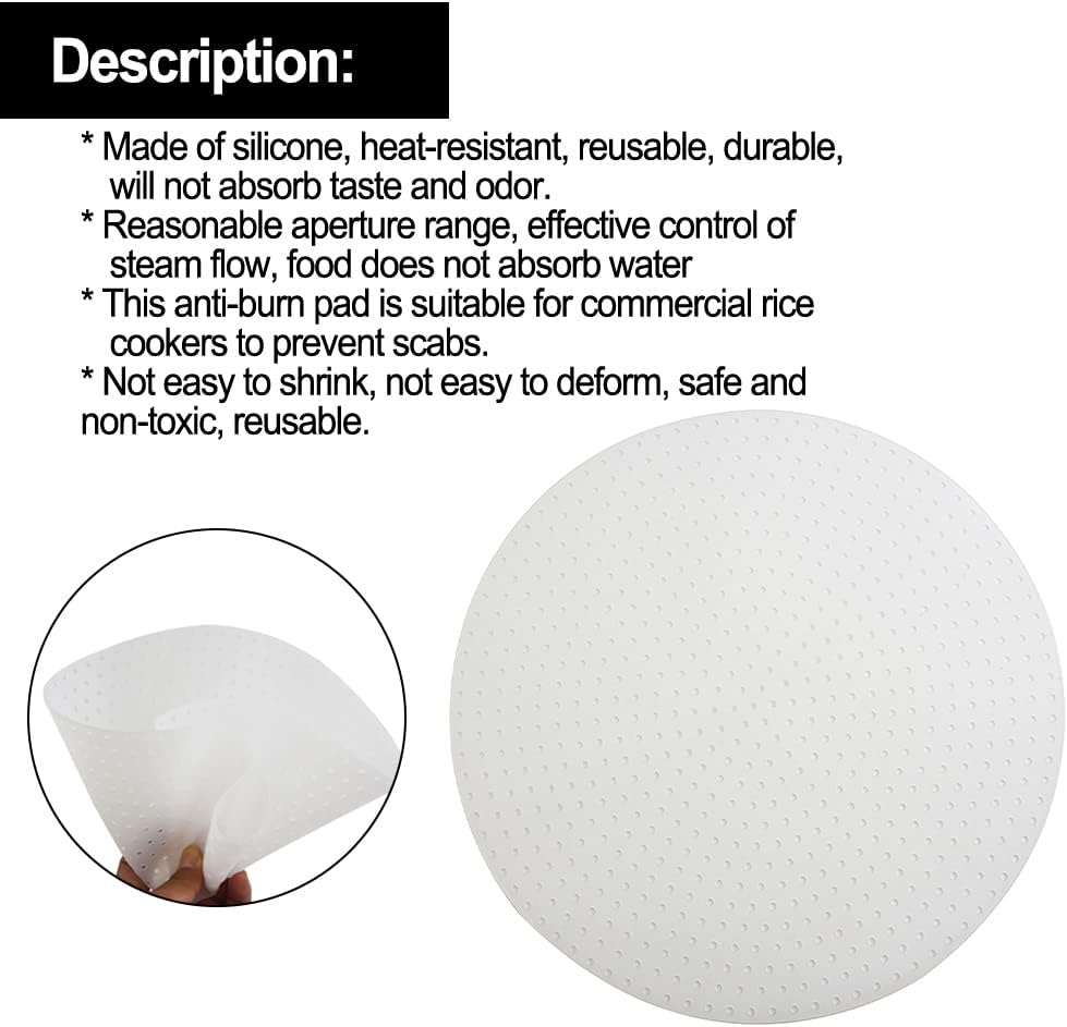 • 【Zuschneidbar】Der Durchmesser der Reismatte beträgt 18-40 cm, bitte stellen Sie sicher, dass das Modell das ist, das Sie benötigen, bevor Sie kaufen. Wenn Sie eine Schnellkochtopfmatte kaufen, die grösser ist als die Grösse der Einlage, kann sie