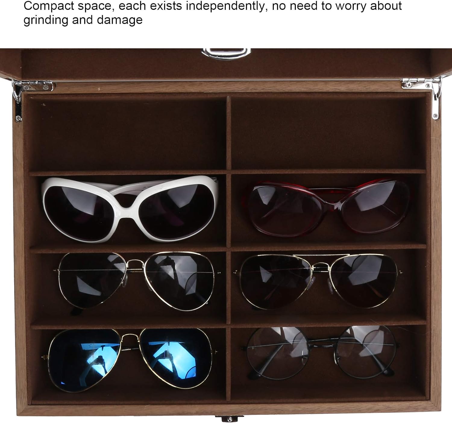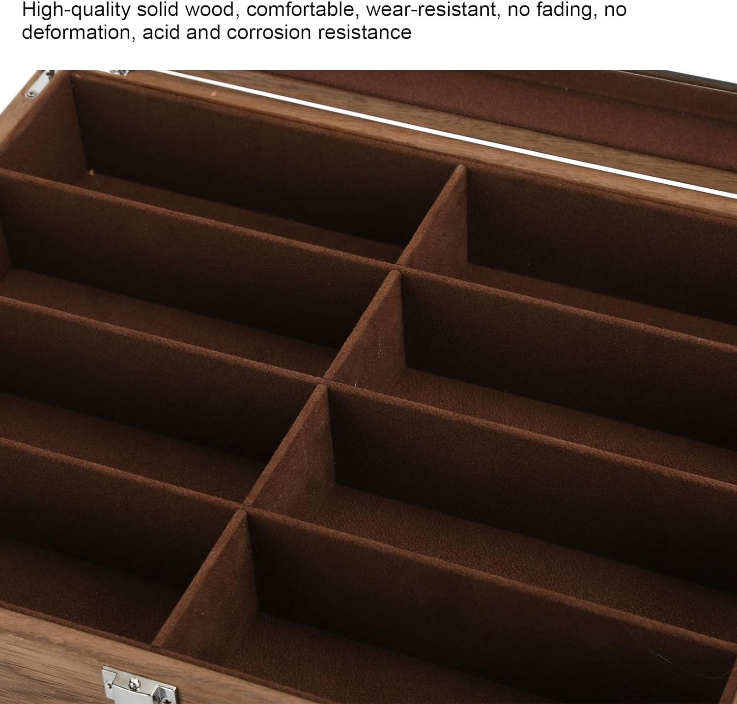 PRODUKTBESCHREIBUNGEN Feature: 1. Bei Verwendung von hochwertigem Massivholz fühlt es sich angenehm an, verschleissfest, verblasst oder verformt nicht, ist säure und korrosionsbeständig und hat eine lange Lebensdauer. 2. Der Stil ist High End, und das Glasdesign kann Ihre Brille besser zur Geltung bringen und auch Ihr Zuhause dekorieren. 3. Nimmt 8 separate Fächer an, um sicherzustellen, dass Ihre Artikel in Ordnung sind. 4. Der kompakte Raum ist unabhängig voneinander vorhanden, sodass Sie sich keine Gedanken über Schleifen und Beschädigung machen müssen. 5. Das Aussehen ist schön und exquisit, es kann Ihre Brille gut pflegen. Spezifikation: Zustand: 100% nagelneu Artikeltyp: Brillenbox Grösse: Ca. 34 x 26,5 x 8 cm (13,4 x 10,4 x 3,1 Zoll) Zweck: Aufbewahrungsbox für Gläser, 8 separate Fächer, kein Verschleiss und reissen Paketliste: 1 x Brillenbox